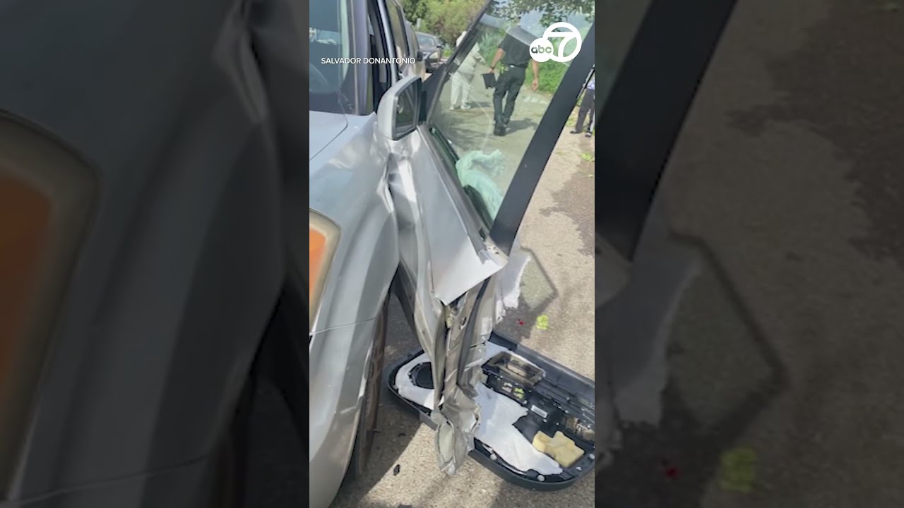 A human-driven Waymo self-driving car crashed into multiple vehicles near Dodger Stadium in Los Angeles, narrowly avoiding striking a family.